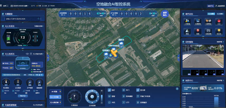 近年来,随着人工智能的快速发展和普及,无人驾驶技术在实现城市交通智能化、汽车智能化和提高物流发展效率等方面都发挥了重要作用。公司基于无人车,融合无人机、宣传大屏、警报、警灯、语音对讲、LED屏、布控球、强光灯、大气微站、应急等装备,打造空地融合AI智控应用,广泛应用于公安巡逻、园区安防、应急指挥、环境监测、无人配送等场景。